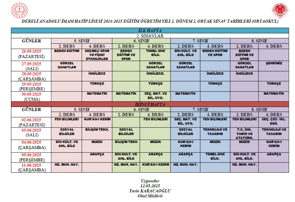 2024-2025 EĞİTİM ÖĞRETİM YILI 2. DÖNEM 2. ORTAK SINAV TARİHLERİ YAYINLANMIŞTIR